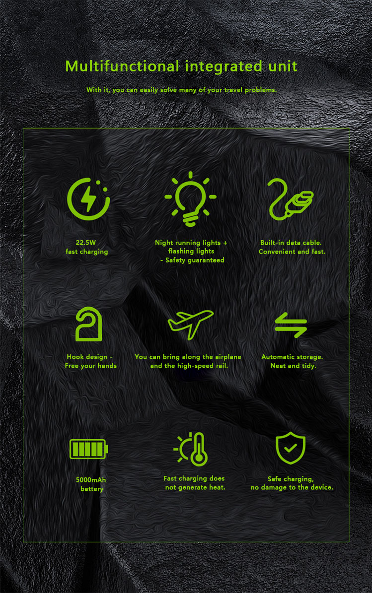 New PD22.5W built-in cable super fast charging power bank, 10,000 mah ultra-thin