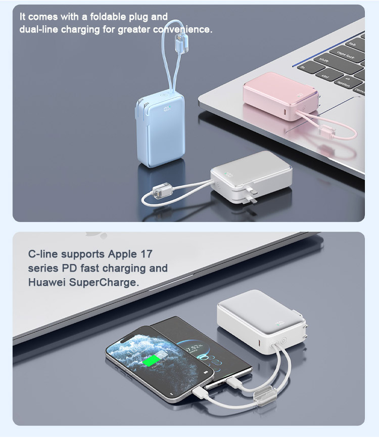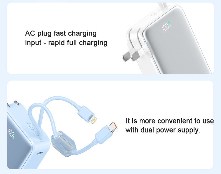 Two-in-one portable charger with super-fast charging and built-in charger