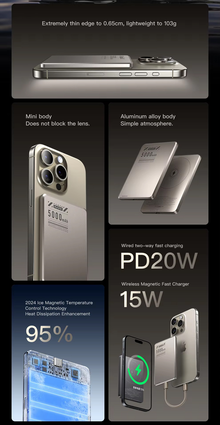 Extremely thin 5000mAh magnetic wireless charging