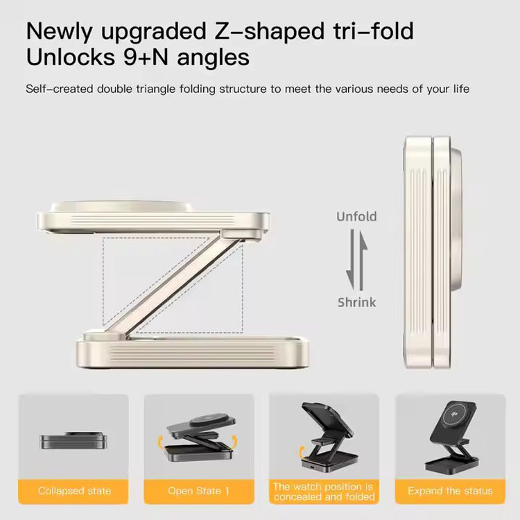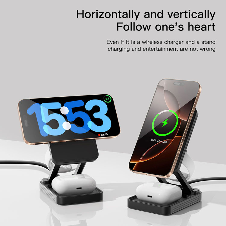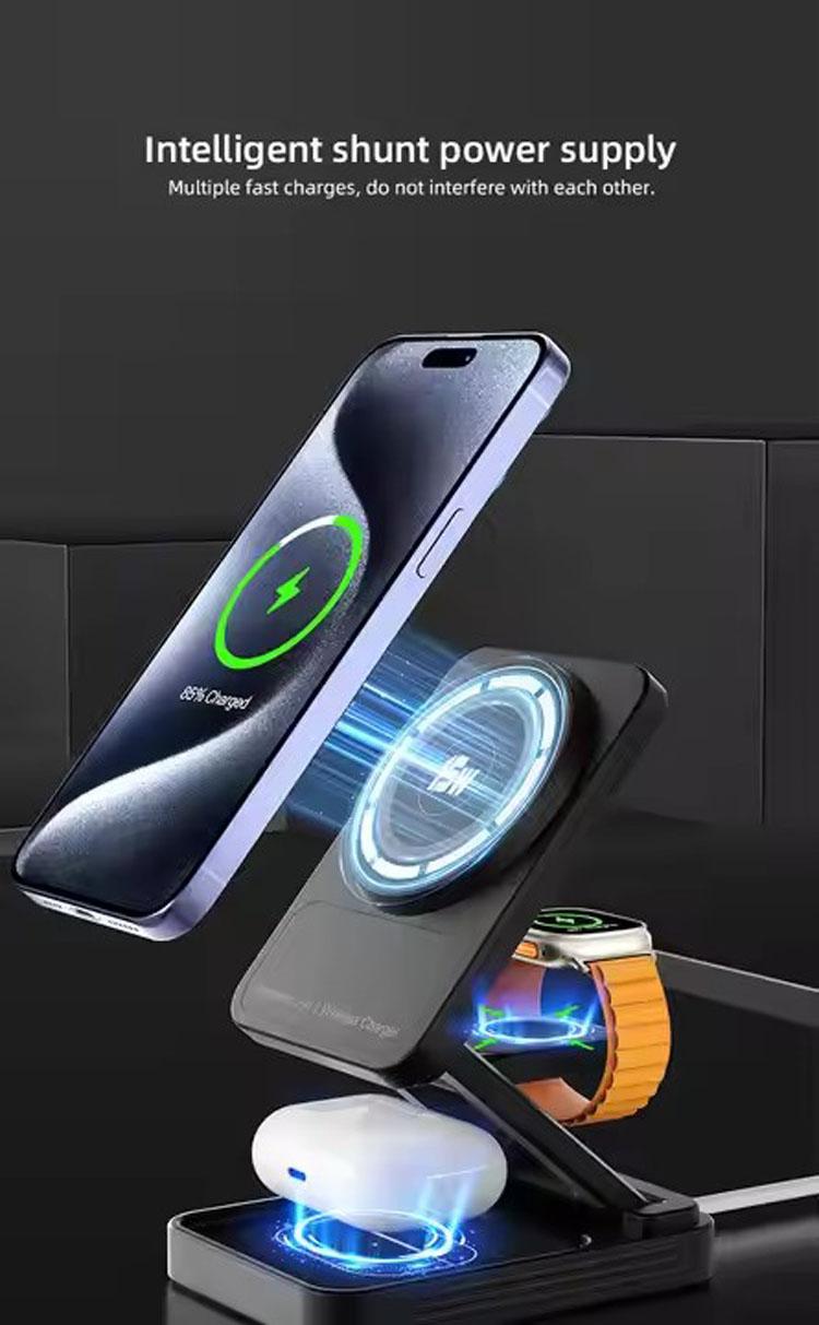 3-in-1 multifunctional magnetic metal shell wireless charger stand